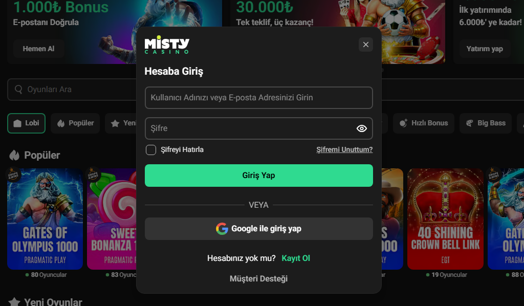 Misty Casino giriş yapamıyorum, ne yapmalıyım?